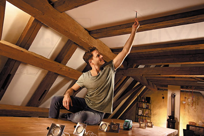 - Laser idealnie ułatwia instalację oświetlenia sufitowego rozmieszczonego wokół stołu