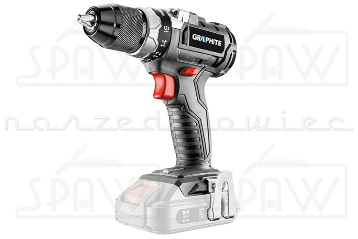Dwubiegowa wiertarko-wkrętarka GRAPHITE, współpracująca z akumulatorami 18V Li-Ion GRAPHITE Energy+ jest narzędziem przeznaczonym do wiercenia otworów bądź wkręcania śrub oraz wkrętów w różnego rodzaju materiały. Elektronarzędzie posiada płynną regulację prędkości obrotowej oraz zostało wyposażone w przełącznik kierunku obrotów. W konstrukcji urządzenia zastosowano nowoczesny i wydajny silnik bezszczotkowy, który w porównaniu z konstrukcjami szczotkowymi charakteryzuje się dłuższym czasem pracy na jednym naładowaniu, większą kontrolą nad prędkością obrotową oraz mniejszymi wymiarami, co przekłada się na bardziej zwartą i kompaktową budowę całego urządzenia. Ponadto silnik jest bardziej odporny na pracę w trudnych warunkach, np. w dużym zapyleniu oraz lepiej odprowadza ciepło, przez co pozwala na bardziej intensywną pracę pod większym obciążeniem. Przekładnia planetarna została wykonana z wysokogatunkowej stali. Maksymalna prędkość obrotowa wrzeciona na pierwszym biegu wynosi 500, a na drugim 1700 obrotów na minutę. Maksymalny moment obrotowy wynosi 38 Nm (wkręcanie miękkie) / 58 Nm (twarde) i może być regulowany poprzez 16-stopniowe sprzęgło z dodatkową opcja wiercenia. Samozaciskowy metalowy uchwyt pozwala na stosowanie osprzętu o średnicy 2-13 mm. Urządzenie wyposażono w elektryczny hamulec silnika i automatyczną blokadę wrzeciona. Dioda LED, uruchamiana automatycznie, podświetla miejsce pracy. Ergonomiczny kształt rękojeści i zwarta konstrukcja wiertarko-wkrętarki pozwalają na wygodną pracę także w trudnych warunkach. Rękojeść została pokryta materiałem antypoślizgowym, dzięki czemu elektronarzędzie pewnie leży w dłoni.