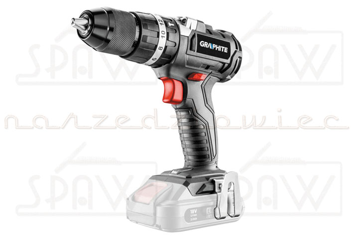 Dwubiegowa wiertarko-wkrętarka GRAPHITE, współpracująca z akumulatorami 18V Li-Ion GRAPHITE Energy+ jest narzędziem przeznaczonym do wiercenia otworów bądź wkręcania śrub oraz wkrętów w różnego rodzaju materiały. Elektronarzędzie posiada płynną regulację prędkości obrotowej oraz zostało wyposażone w przełącznik kierunku obrotów. W konstrukcji urządzenia zastosowano nowoczesny i wydajny silnik bezszczotkowy, który w porównaniu z konstrukcjami szczotkowymi charakteryzuje się dłuższym czasem pracy na jednym naładowaniu, większą kontrolą nad prędkością obrotową oraz mniejszymi wymiarami, co przekłada się na bardziej zwartą i kompaktową budowę całego urządzenia. Ponadto silnik jest bardziej odporny na pracę w trudnych warunkach, np. w dużym zapyleniu oraz lepiej odprowadza ciepło, przez co pozwala na bardziej intensywną pracę pod większym obciążeniem. Przekładnia planetarna została wykonana z wysokogatunkowej stali. Maksymalna prędkość obrotowa wrzeciona na pierwszym biegu wynosi 500, a na drugim 1700 obrotów na minutę. Maksymalny moment obrotowy wynosi 38 Nm (wkręcanie miękkie) / 58 Nm (twarde) i może być regulowany poprzez 16-stopniowe sprzęgło z dodatkowymi opcjami wiercenia oraz wiercenia z udarem. Samozaciskowy metalowy uchwyt pozwala na stosowanie osprzętu o średnicy 2-13 mm. Urządzenie wyposażono w elektryczny hamulec silnika i automatyczną blokadę wrzeciona. Dioda LED, uruchamiana automatycznie, podświetla miejsce pracy. Ergonomiczny kształt rękojeści i zwarta konstrukcja wiertarko-wkrętarki pozwalają na wygodną pracę także w trudnych warunkach. Rękojeść została pokryta materiałem antypoślizgowym, dzięki czemu elektronarzędzie pewnie leży w dłoni.