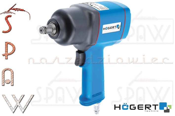 Profesjonalny pneumatyczny klucz udarowy firmy Högert o dużej sile 1500 Nm. Służy do odkręcania i przykręcania śrub i nakrętek. Nadaje się do każdego warsztatu samochodowego jak i do zastosowań produkcyjnych. Stosowany przy samochodach osobowych, busach - jest odporny na różnego typu uszkodzenia. Wyposażony w udar typu Twin HAMMER, który jest niezbędny podczas pracy z przyrdzewiałymi i zapieczonymi śrubami - zmniejsza również prawdopodobieństwo zerwania śruby czy jej gwintu. Klucz wyposażony w trzystopniową regulację siły, przełącznik kierunku obrotów, posiada ergonomiczną i wygodną rękojeść. Ma małe zapotrzebowanie powietrza - średnio tylko 155 l/min. Jest to produkt firmy Högert - znanego producenta narzędzi.