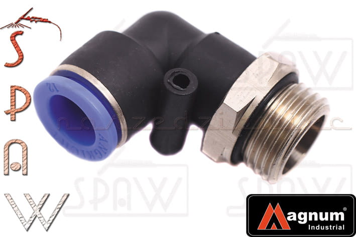 Kolanko - złączka wtykowa kątowa typu łącznik przelotowy do instalacji pneumatycznych pozwala na proste i szybkie łączenie przewodów pneumatycznych. Złączka wysokiej jakości. Produkt marki MAGNUM
