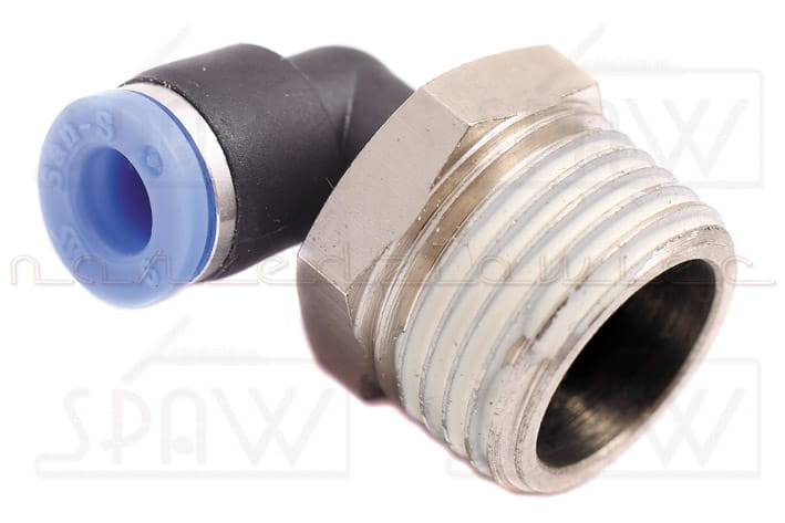Złączka wtykowa kątowa - KOLANO - typu QUICK gwint zewnętrzny 1/8" na wąż 8mm.