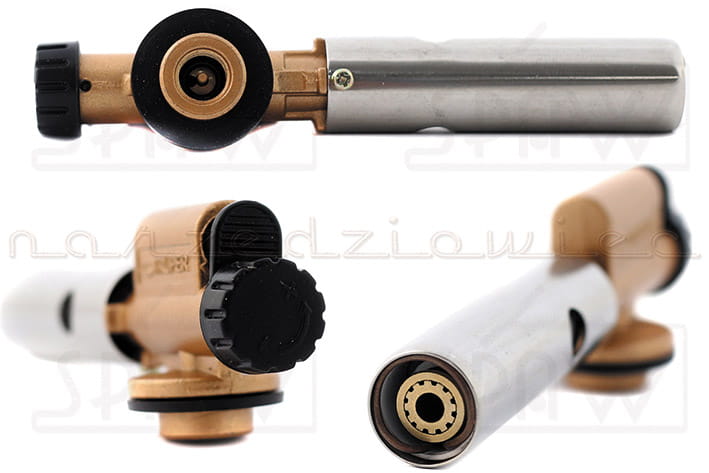 - Palnik z zapalaniem PIEZO (z przycisku) z regulacją mocy płomienia