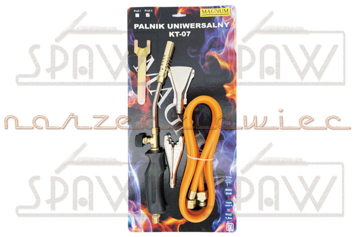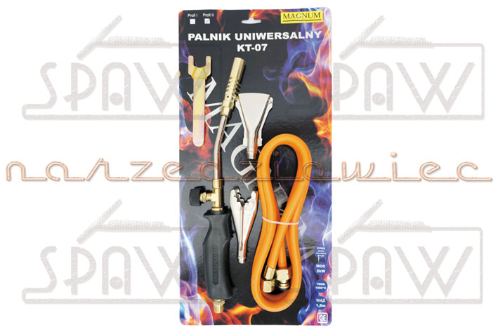 Palnik KT-07 jest propanowo - butanowym palnikiem uniwersalnym do lutowania i opalania, wykorzystywanym często przy pracach dekarskich ( podgrzewanie papy itp. ). Przystosowany jest do pracy na gaz propan i propan-butan. Może być połączony z butlą bezpośrednio lub poprzez reduktor.