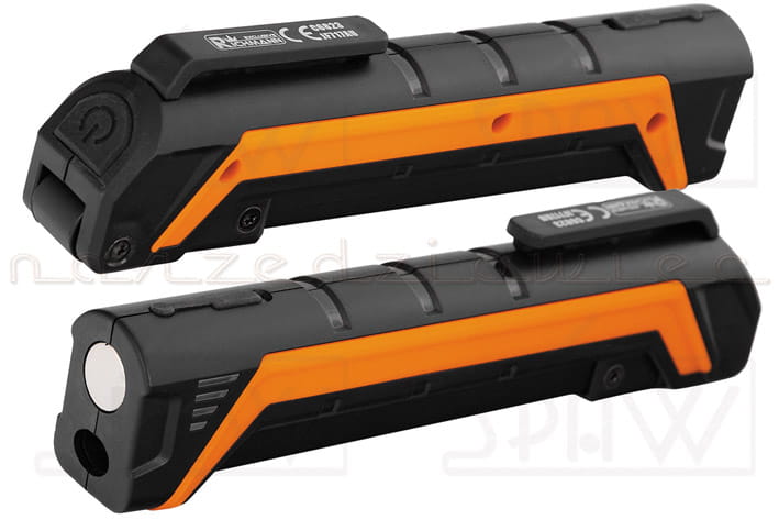 - Lampa wyposażona w mocny magnes neodymowy u podstawy oraz drugi znajdujący się na klipsie.