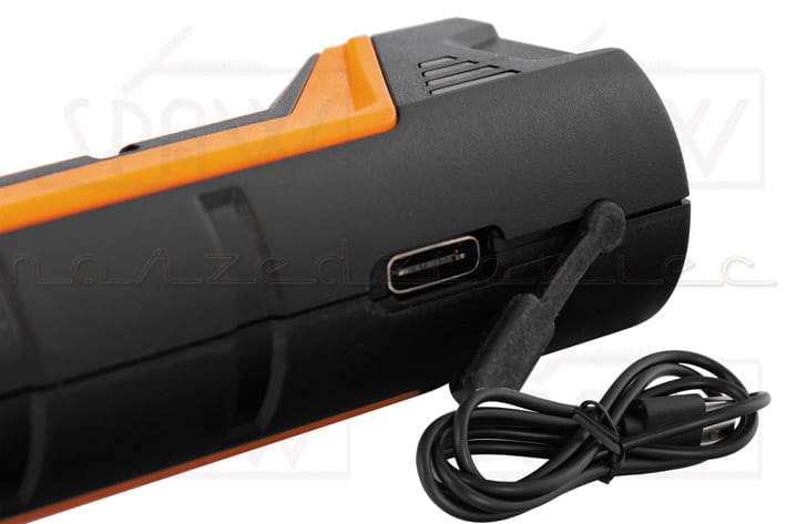 - Akumulator ładowany za pomocą ładowarki USB (in 240V / out 5V) z wyjściem USB typu C.