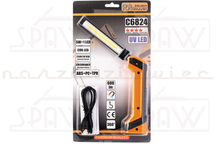 - Wielofunkcyjna akumulatorowa składa lampa / latarka warsztatowa LED + UV.