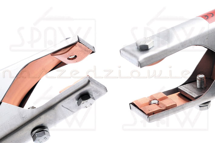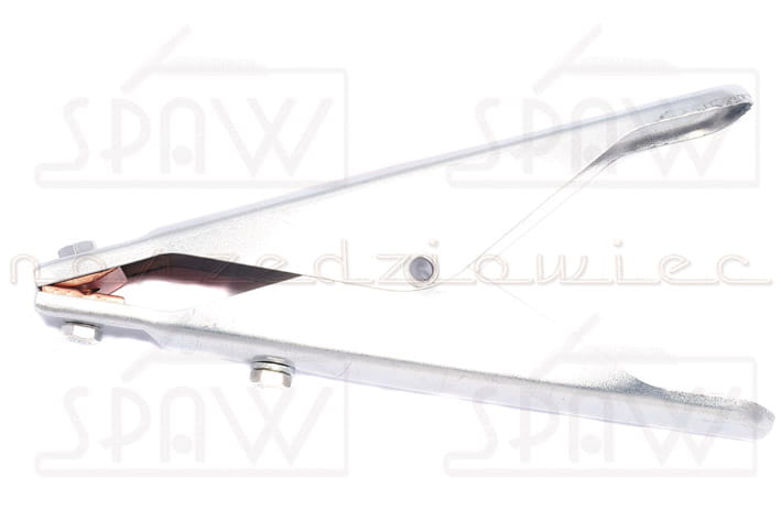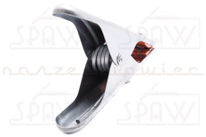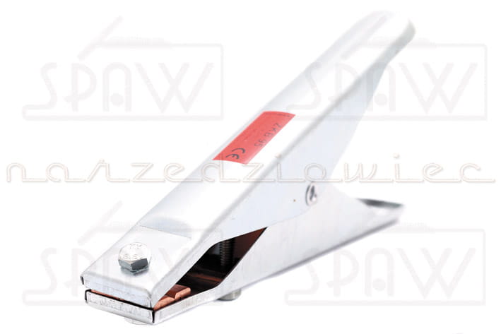 Zacisk masowy biegunowo - kleszczowy służy do szybkiego mocowania przewodu spawalniczego ( jako jednego z biegunów źródła prądu ) z materiałem spawanym. Przewód spawalniczy mocowany jest do jednej ze szczęk za pomocą połączenia śrubowego. Elementy stykowe połączone są miedzianym połączeniem podatnym. Zastosowane materiały zapewniają właściwą trwałość eksploatacyjną zacisku, który dodatkowo zabezpieczony jest antykorozyjnie powłoką cynkową.