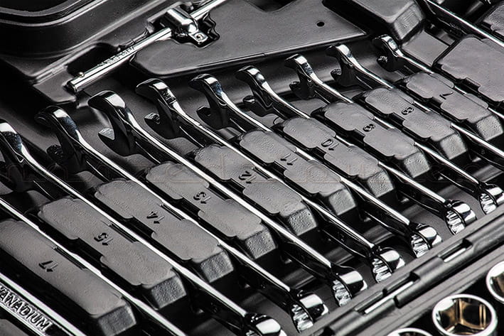 - klucze płasko-oczkowe 11szt: 7,8,9,10,11,12,13,14,15,17,19 mm
