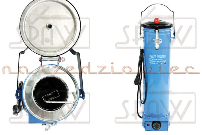 Suszarka DHF-5 jednorazowo może pomieścić 5 kg elektrod i osuszyć je w temperaturze 50 - 300 ºC. Niewielka waga oraz wygodny uchwyt pozwalają na komfortowe przenoszenie urządzenia. Suszarka jest niezastąpiona w przypadku spawania elektrodami otulonymi w warunkach podwyższonej wilgotności ( montaż konstrukcji stalowych w warunkach polowych, układanie rurociągów, prace stoczniowe, zakłady przemysłowe i tym podobne ).