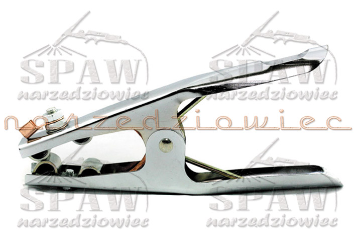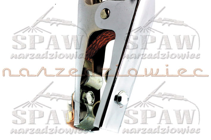Zacisk masowy biegunowo - kleszczowy służy do szybkiego mocowania przewodu spawalniczego ( jako jednego z biegunów źródła prądu ) z materiałem spawanym. Przewód spawalniczy mocowany jest do jednej ze szczęk za pomocą połączenia śrubowego. Elementy stykowe połączone są miedzianym połączeniem podatnym. Zastosowane materiały zapewniają właściwą trwałość eksploatacyjną zacisku, który dodatkowo zabezpieczony jest antykorozyjnie powłoką cynkową.